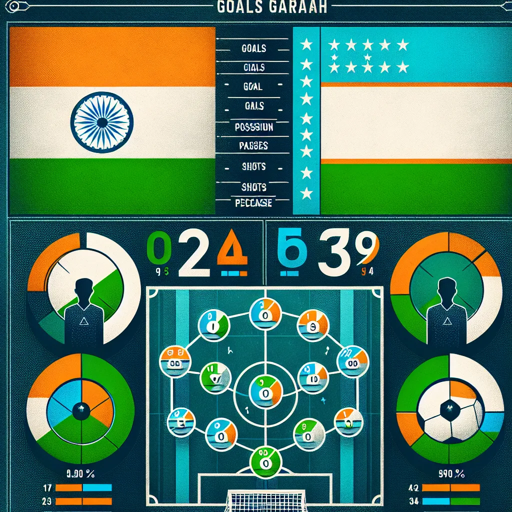 1. **Встречи между сборными**: Сборные Индии и Узбекистана по футболу встречались несколько раз в различных международных турнирах и товарищеских матчах. Узбекистан чаще выходил победителем в этих встречах.2. **Последний матч**: Последняя встреча между этими командами состоялась в рамках отборочных турниров или товарищеских матчей, где Узбекистан, как правило, демонстрировал более сильную игру.3. **Общая статистика**: Узбекистан имеет преимущество в победах над Индией, благодаря более развитой футбольной инфраструктуре и уровню подготовки игроков.